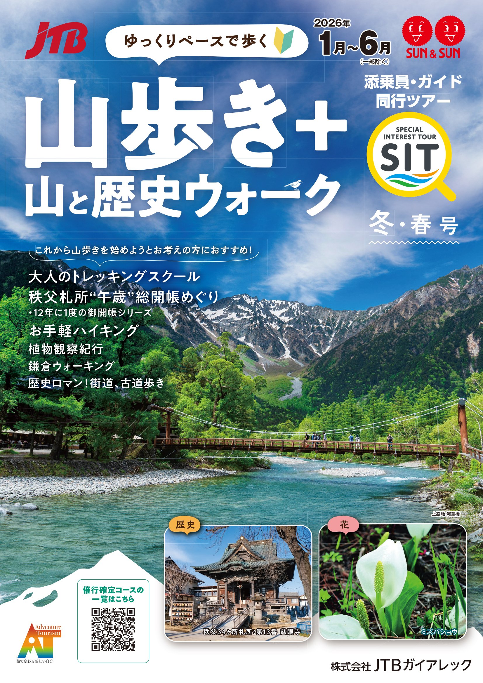 日本山岳ガイド協会認定のプロガイドと連携し、憧れの名峰をめざして、体力技術を上達させる講座型の山旅を多数ご用意しています。安全な登山の知識・技術を学びながら歩いていただくことで、登山の楽しみがぐんと広がります。