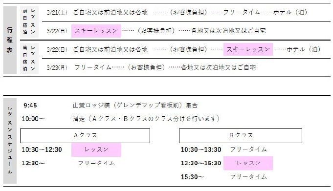 3月22日(日)午前又は午後2時間のスキーレッスンを受講いただけます